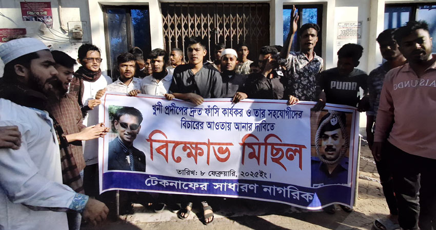 শনিবার বিকাল ৪ টায় টেকনাফ পৌরসভার জিরো পয়েন্ট শাপলা চত্বরে জমায়েত হয়ে মিছিল সহকারে  থানার সামনের প্রেসক্লাবে গিয়ে বক্তারা বক্তব্য রাখেন।