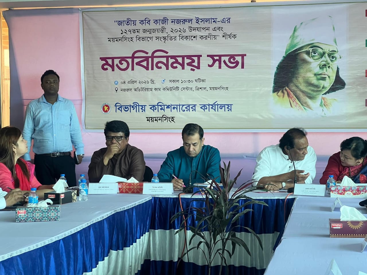 নিজস্ব প্রতিবেদক, ময়মনসিংহ: জাতীয় কবি কাজী নজরুল ইসলামের স্মৃতিবিজড়িত ময়মনসিংহে কবির ১২৭তম জন্মজয়ন্তী (২০২৬) বর্ণাঢ্য আয়োজনে উদযাপন এবং ময়মনসিংহ বিভাগে সংস্কৃতির সামগ্রিক বিকাশে এক গুরুত্বপূর্ণ মতবিনিময় সভা অনুষ্ঠিত হয়েছে। শনিবার (৪ঠা এপ্রিল) সকাল সাড়ে দশ ঘটিকায় কবি নজরুল ইসলাম অডিটোরিয়াম সেন্টারে এ সভা অনুষ্ঠিত হয়।